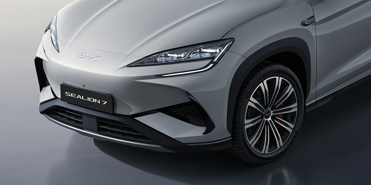 Фронтальная часть SEALION 7 с фирменным решением «OCEAN X» выделяется мощной X-образным силуэтом, который придаёт автомобилю внушительный облик